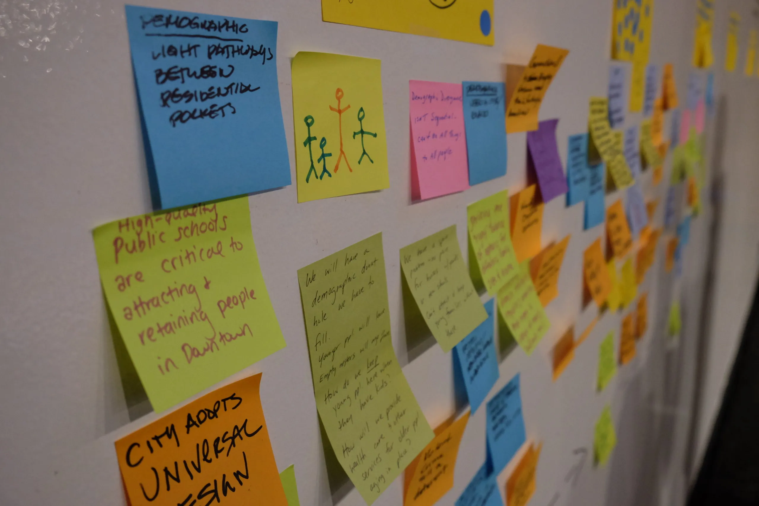 During a workshop in St. Louis in January 2020, a group of more than 40 public and private stakeholders used the cards as a foil for a shared exploration of the context for the coming decade. Insights provoked by the forecasts were recorded on a shared workspace.